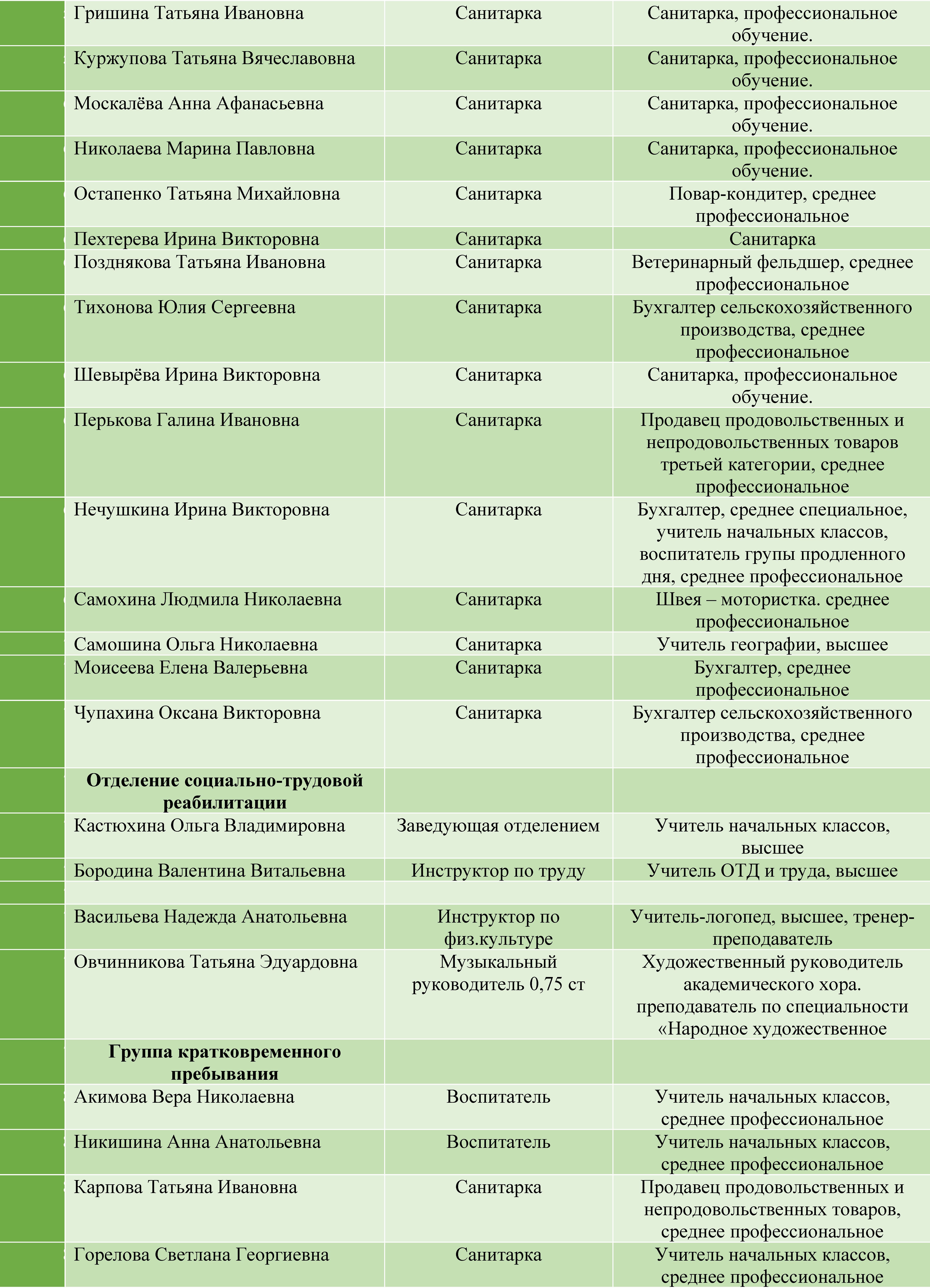 Кадровый состав КСУ СО ОО «Центр «Остров детства» по состоянию на 01.06. 2025 г.